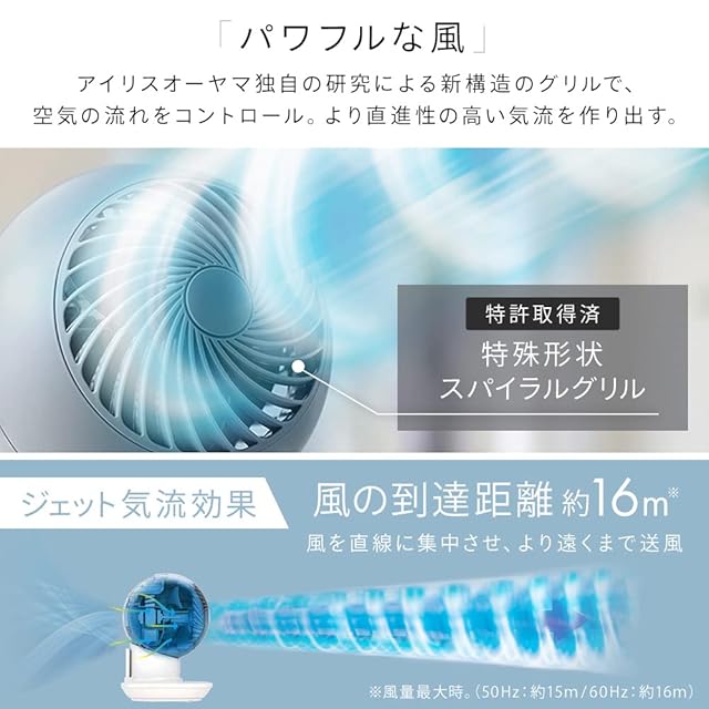 定格電圧:AC100V / 定格周波数:50/60Hz / 定格消費電力:22/20W(左右首ふり時)