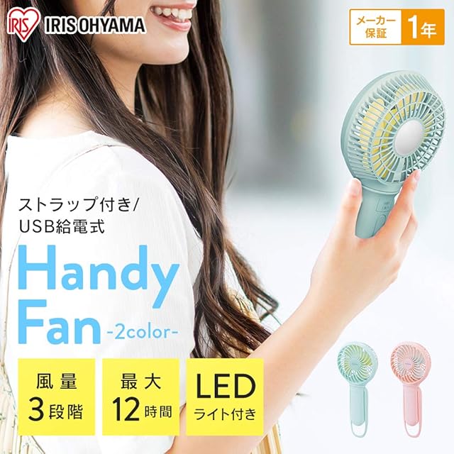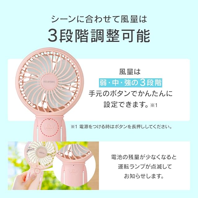 アイリスオーヤマ 携帯扇風機 ハンディファン 充電式 バッテリー機能搭載 JHFBL-01-A ソーダ ソーダブルー
