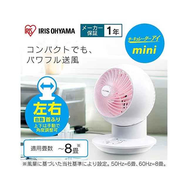 アイリスオーヤマ サーキュレーター アイ mini 8畳 静音 左右首振り パワフル送風 ピンク PCF-SM12-P