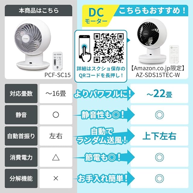 従来比風量20%、到達距離50%アップ!:従来品よりコンパクトなのに適用畳数は8畳から18畳にパワーアップ!
