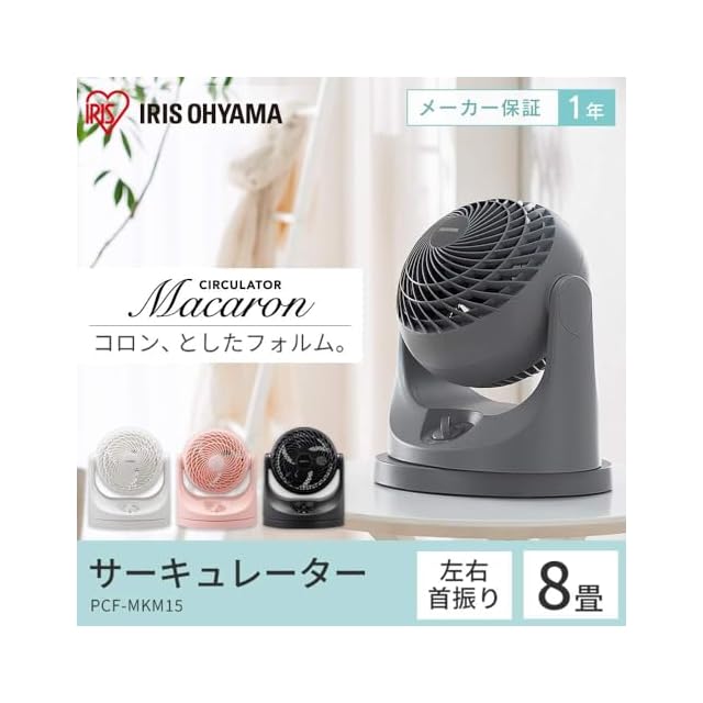 アイリスオーヤマ サーキュレーター 扇風機 静音 8畳 左右首振り マカロン マットデザイン パワフル送風 コンパクト PCF-MKM15-H グレー