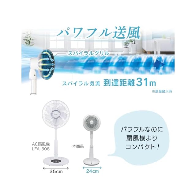 【パワフル送風】サーキュレーター+扇風機の1台で2役。DCモーター搭載だから風を部屋の隅々まで送ることができる。