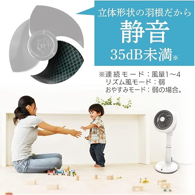 【静音】運転音はわずか35dB(※)で、図書館よりも静か。※連続モード:風量1~4/リズムモード:弱/おやすみモード:弱の場合。