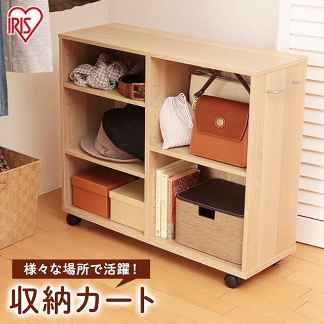 アイリスオーヤマ 棚 キッチンワゴン カート 収納 おしゃれ 調味料ラック おもちゃ 本棚 幅75×奥行26×高さ65cm 取っ手 キャスター付き ナチュラル SYR-7526