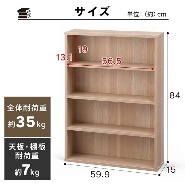 耐荷重:全体/約35kg、天板・棚板/約7kg