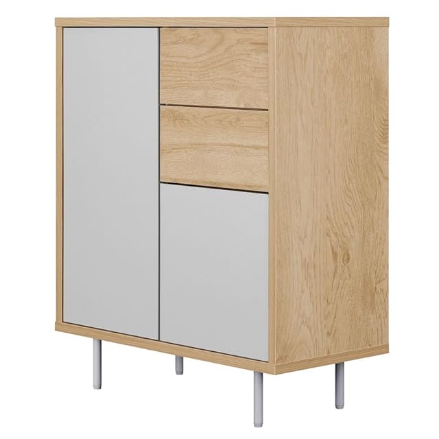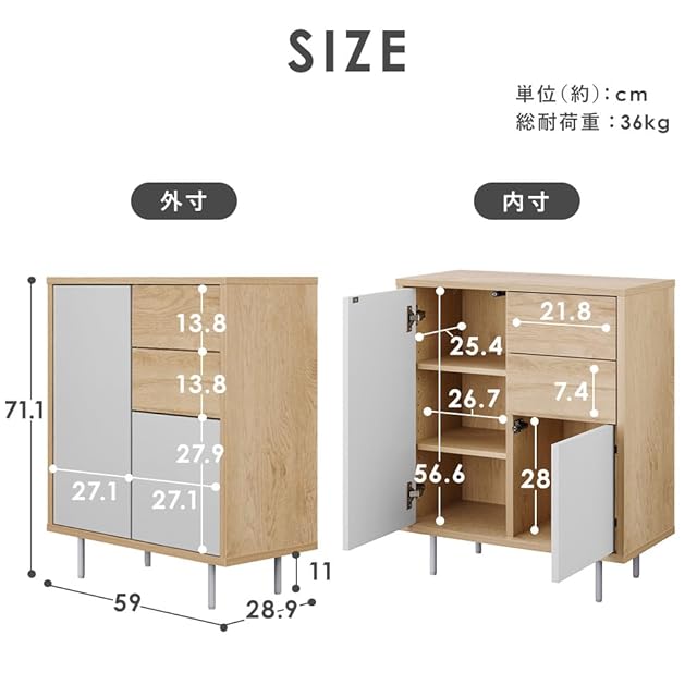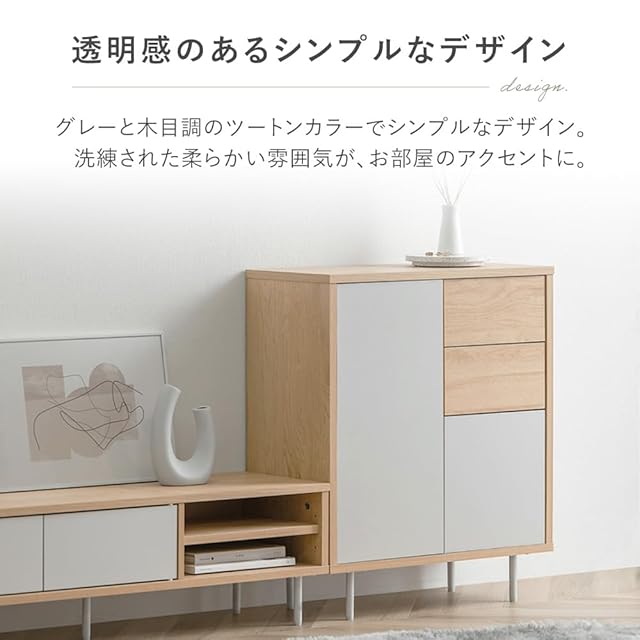 アイリスオーヤマ リビングキャビネット(幅60cm) ディスプレイ棚 ナチュラル/グレー 幅約59.0×奥行約28.9×高さ約71.1 耐荷重:10kg(天板)3kg(各引き出し) 総耐荷重:36kg プッシュオープン式扉 約3.2cm間隔11段階調整可能 可動棚2枚 スライドレール付き 必要工具:プラスドライバー 一人暮らし おしゃれ LaLassicシリーズ LRCS-590