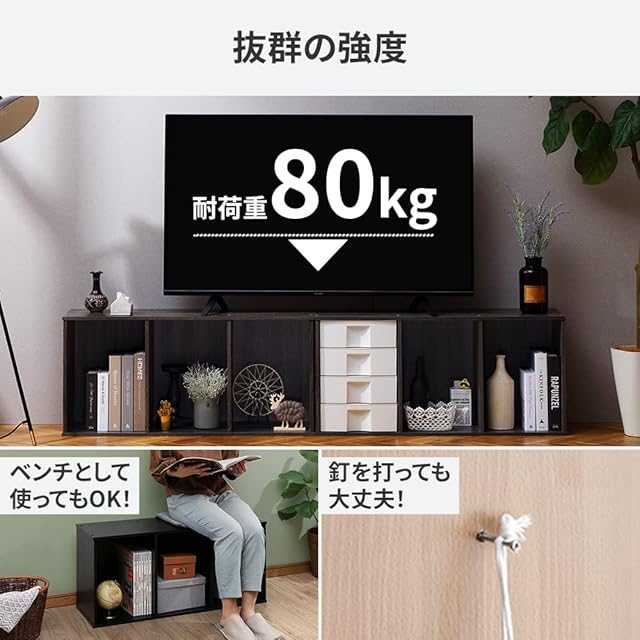 耐荷重(約):棚板1枚あたり30kg、全体80kg ●主要材質:プリント紙化粧パーティクルボード(棚板)、MDF(背板)