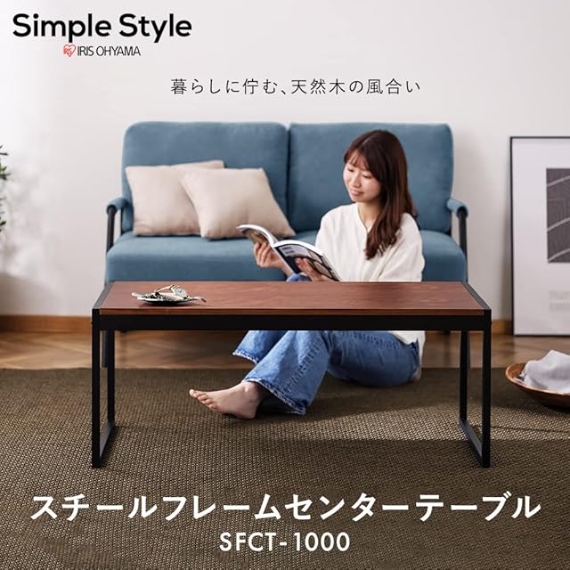 アイリスオーヤマ(IRIS OHYAMA) 天然木×スチールの異素材テーブル 幅100cm ウォールナット 天然木の天板でやさしい風合い スチール製の頑丈フレーム テーブル センターテーブル リビングテーブル SFCT-1000