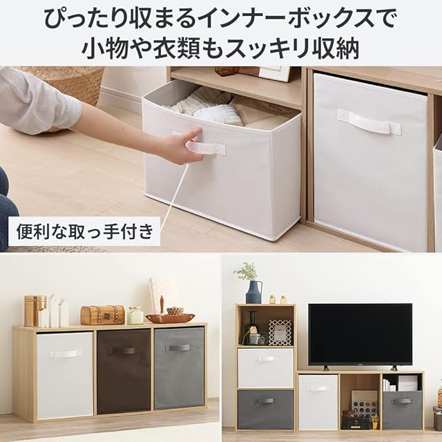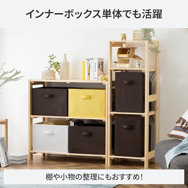 耐荷重:約6kg 材質/側地:不織布(ポリプロピレン100%)/芯材:紙 タイプ:横置き ※「縦置きタイプ」「横置きタイプ」の表記は、CBボックスをタテ向きに置いて使用する場合とヨコ向きにおいて使用する場合を意味しています。