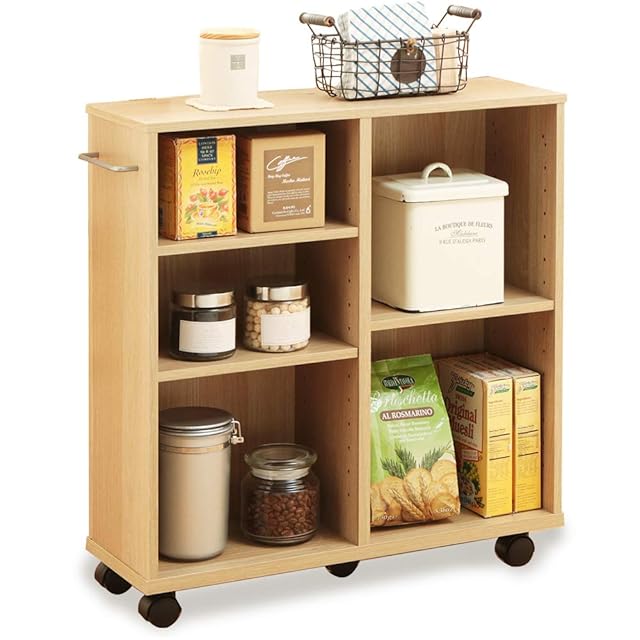 アイリスオーヤマ 棚 キッチンワゴン カート 収納棚 おしゃれ 調味料ラック おもちゃ収納 本棚 幅60×奥行20×高さ65cm 取っ手 キャスター付き ナチュラル SYR-6020