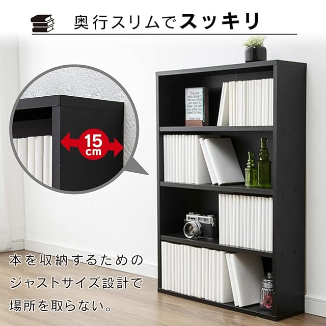 本を収納するためのジャストサイズ設計で場所を取らない。