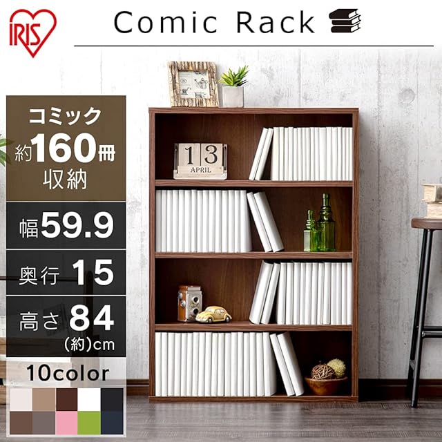 アイリスオーヤマ 本棚 コミックラック 大容量 幅59.9×奥行15×高さ84㎝ ウォールナット CORK-8460