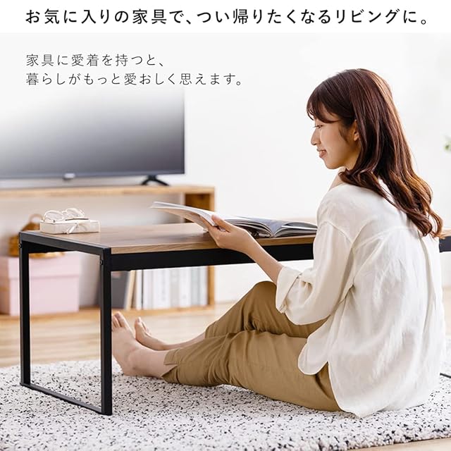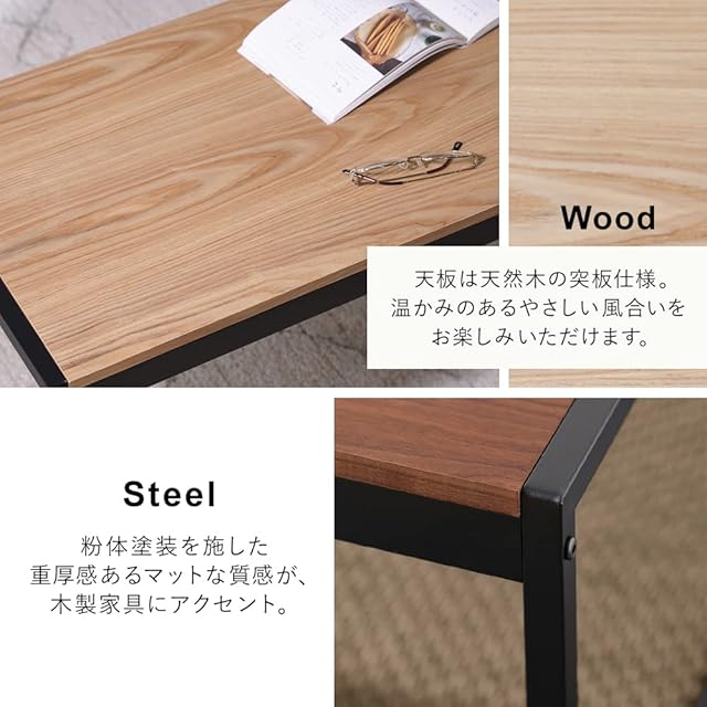 アイリスオーヤマ(IRIS OHYAMA) 天然木×スチールの異素材テーブル 幅100cm ナチュラル 天然木の天板でやさしい風合い スチール製の頑丈フレーム テーブル センターテーブル リビングテーブル SFCT-1000