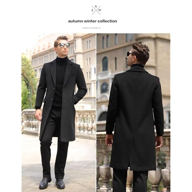 [Kayiyasu] チェスターコート メンズ コートロング 冬服 トレンチコート ビジネスコート ウールコート 大きいサイズ アウター 厚手 防寒 黒 M-2XL (ブラック(厚手), XL)