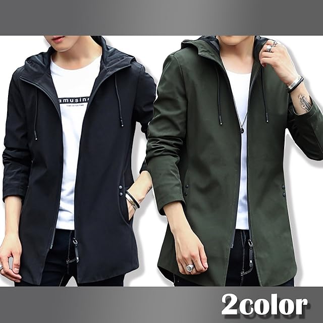 シンプルでオシャレなフード付スタイリッシュミリタリーコートです。