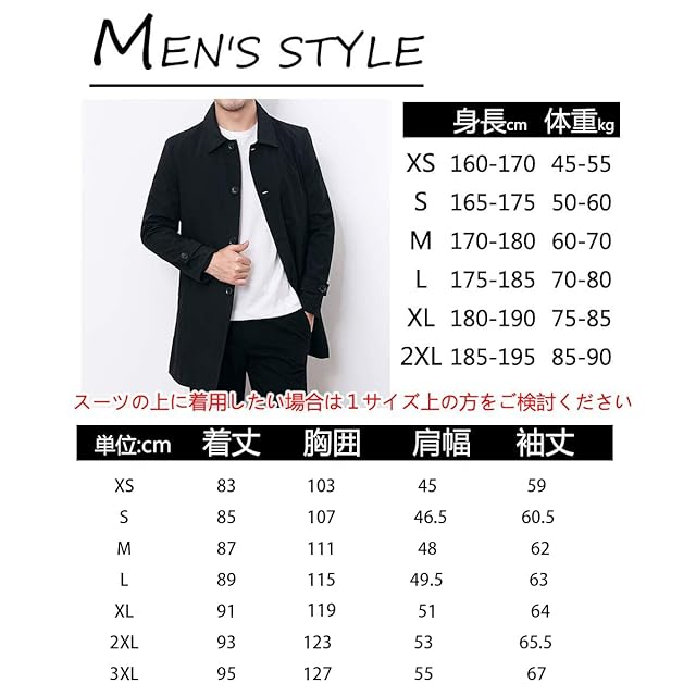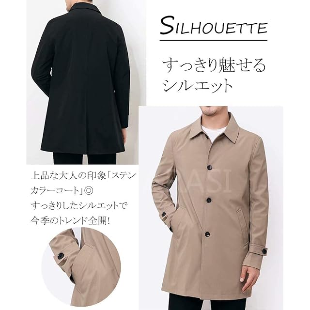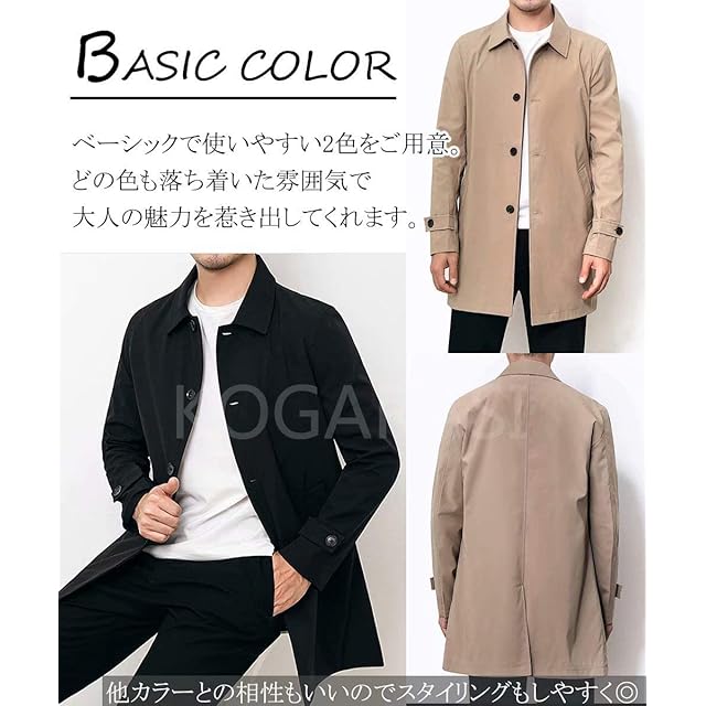 [KOGARASI] トレンチコート メンズ ジャケット スプリングコート テーラード ジャケット 防風 無地 ビジネス カジュアル 兼用 折り襟 秋 冬 春 おしゃれ 薄手