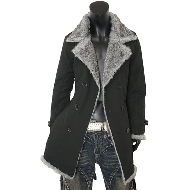 [MensNare] (メンズナーレ) バイアスツイル中綿入りロング丈ファートレンチコート メンズ ヴィジュアル系 I041024-01 ブラック M