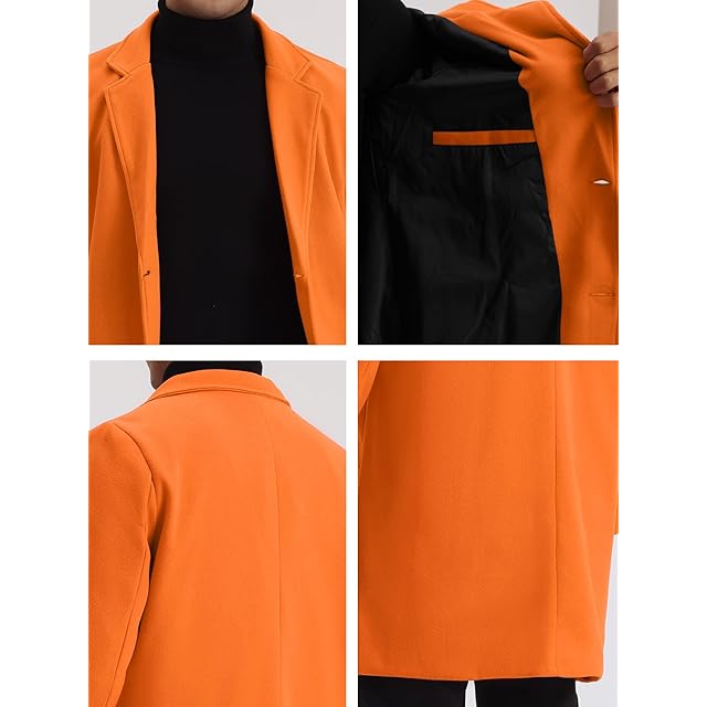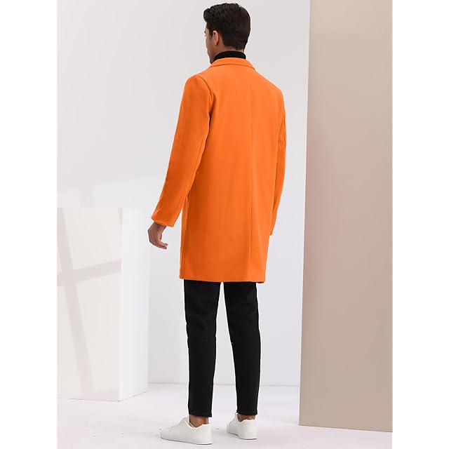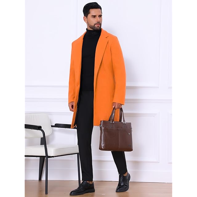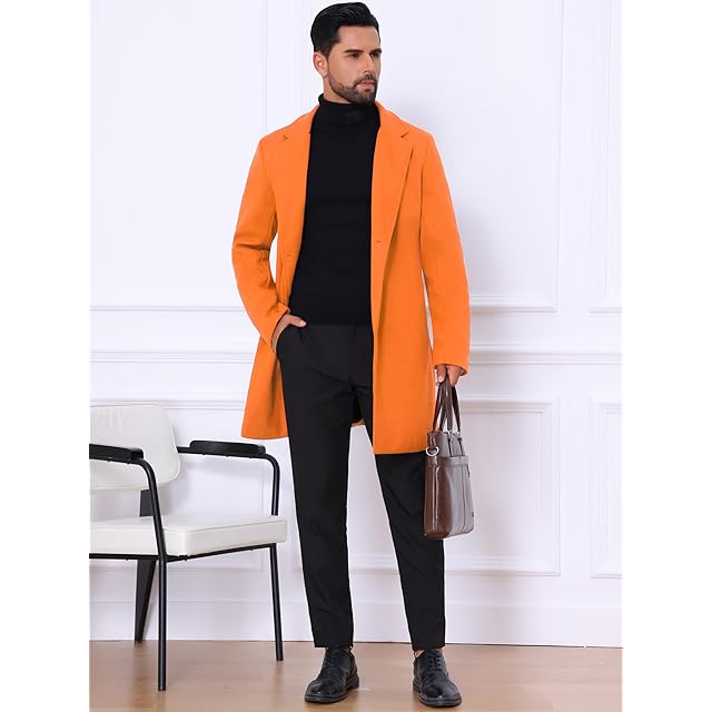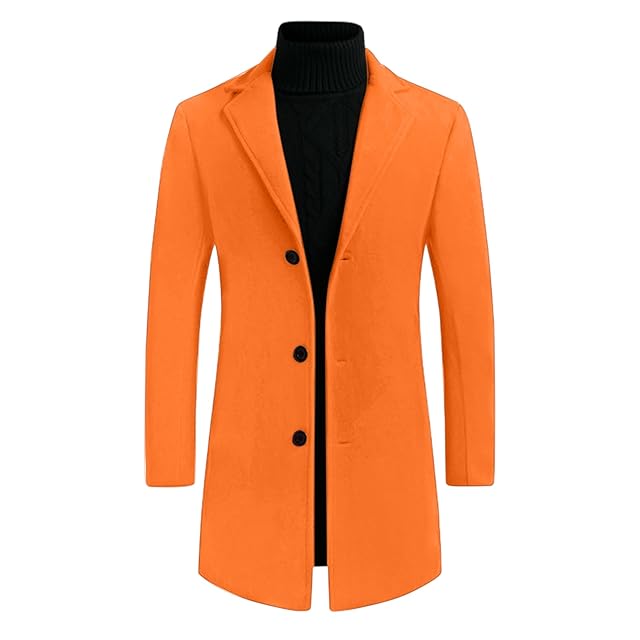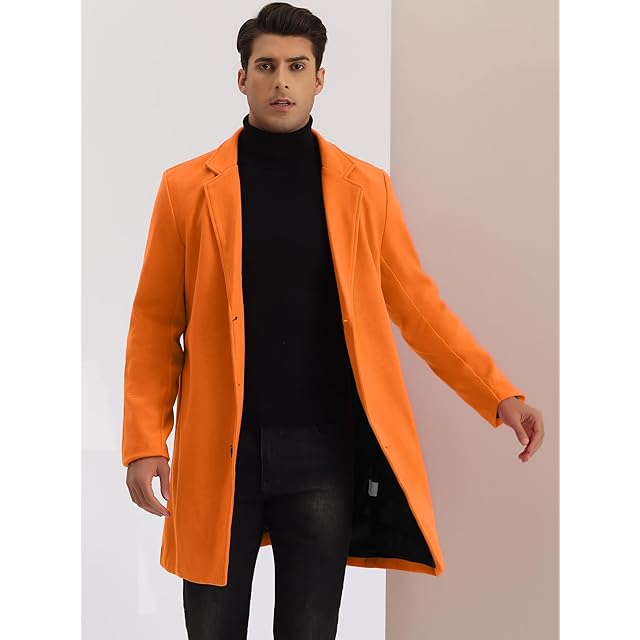 [Lars Amadeus] トレンチコート ロングジャケット オーバーコート スリム ノッチドラペル シングルブレスト 冬 メンズ オレンジ S