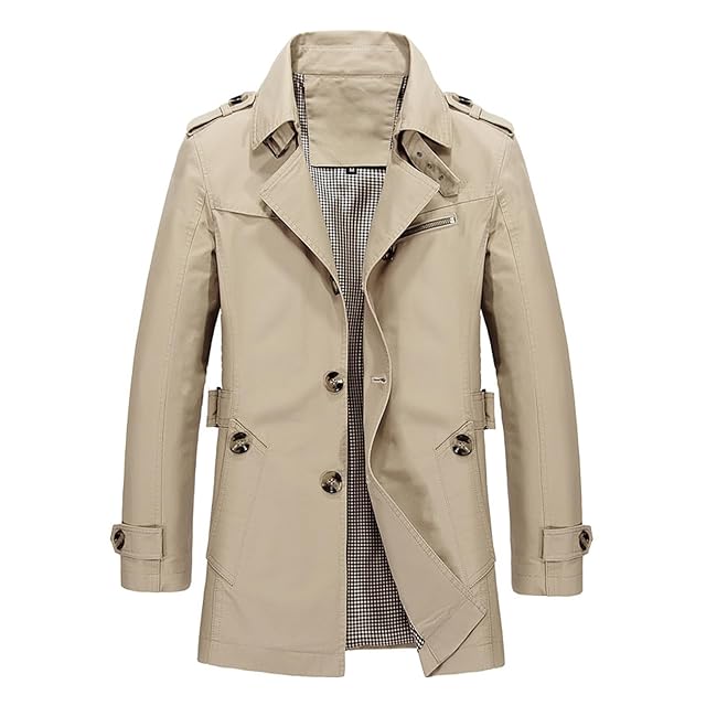 [inotenka] トレンチコート メンズ 大きいサイズ ビジネスコート ジャケット アウター 紳士服 ウインドブレーカー カジュアル アウトドア 登山 通勤 防風 春 秋 中長丈 ロングコート(4XL カーキ)