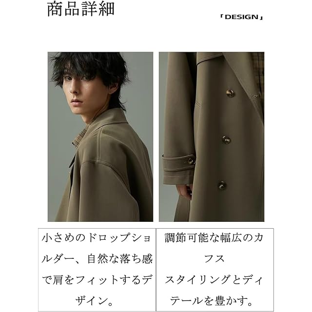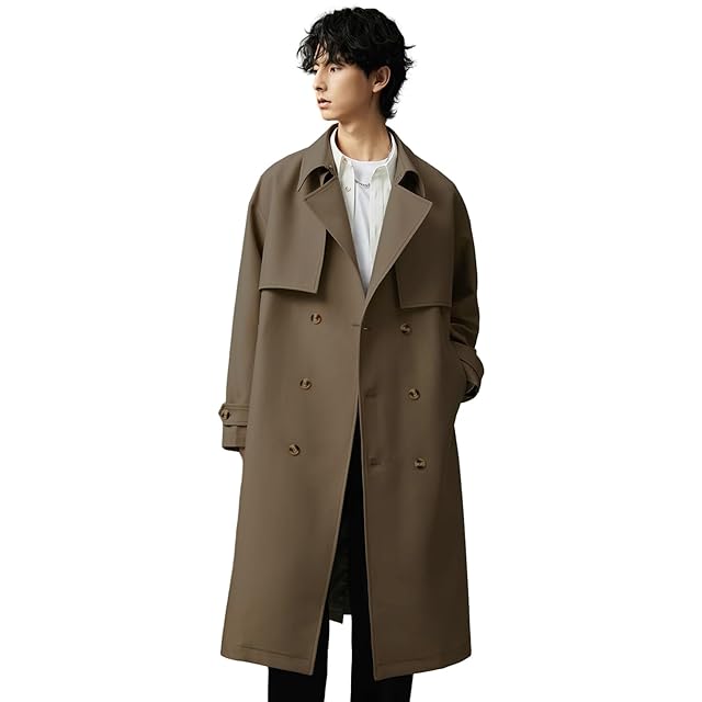 [Kayiyasu] トレンチコート メンズ 冬 ロングコート 大きいサイズ ビジネス チェスター コート 黒 膝下 スーツ 3シーズン対応 M-2XL 撥水加工 通勤 通学 ポリエステル(2XL カーキ)