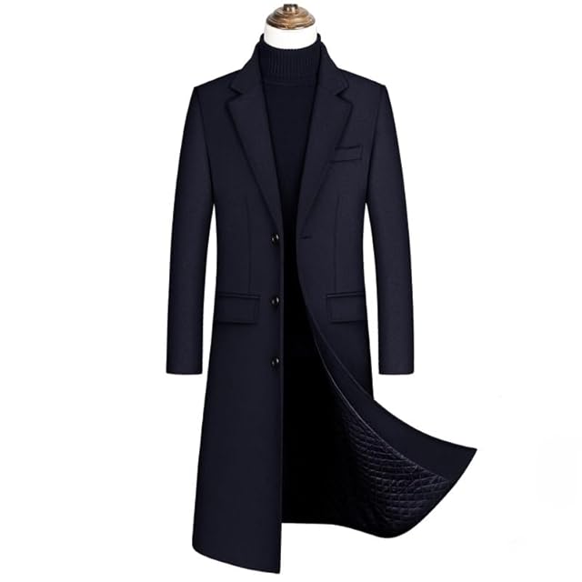 [Kayiyasu] チェスターコート メンズ コートロング 冬服 トレンチコート ビジネスコート ウールコート 大きいサイズ アウター 厚手 防寒 黒 M-2XL (ブルー(厚手), XL)