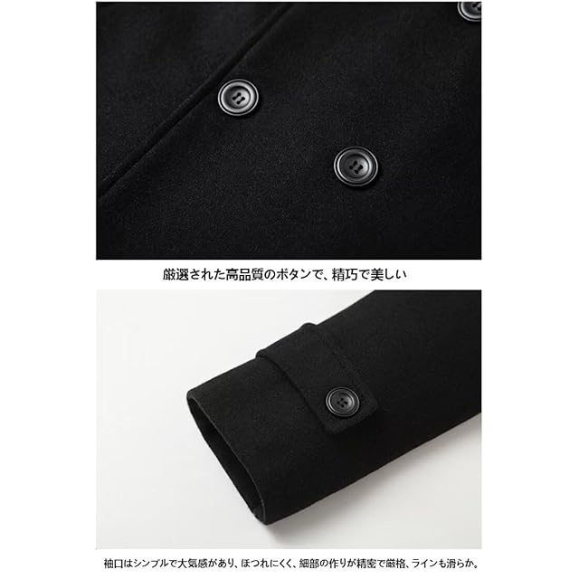 [Kayiyasu] チェスターコート メンズ コート 冬服 トレンチコート ビジネスコート ダブルコート 大きいサイズ アウター 防寒 黒(S ブラック)