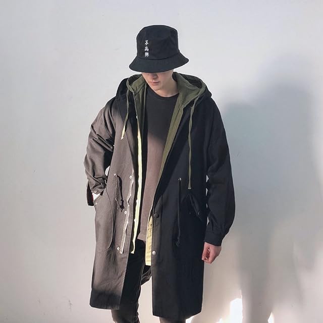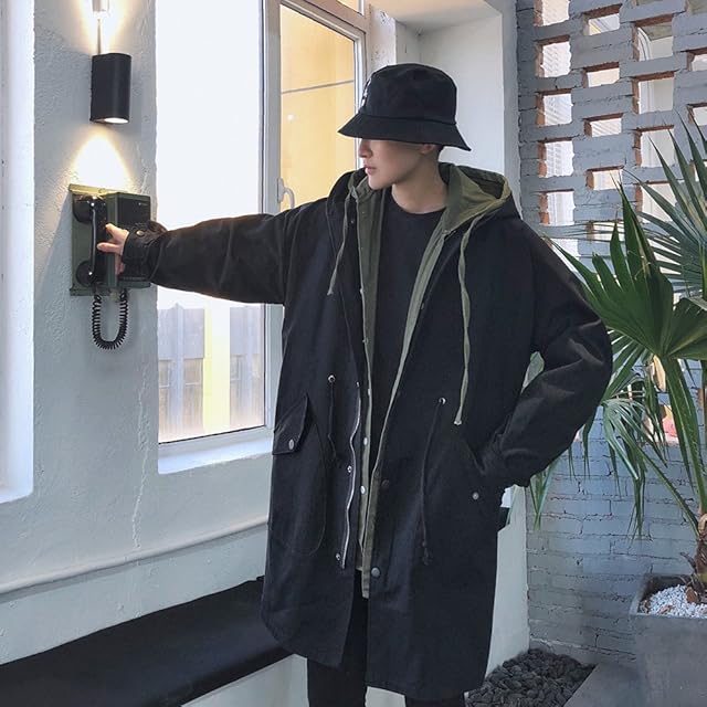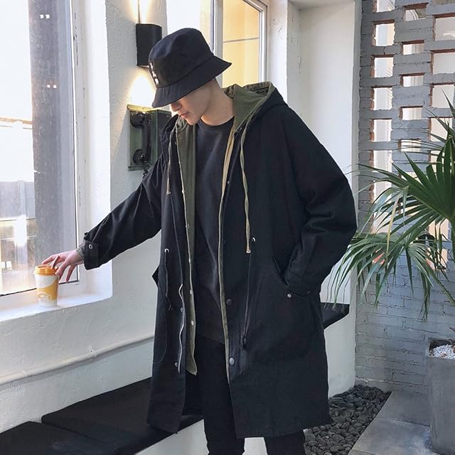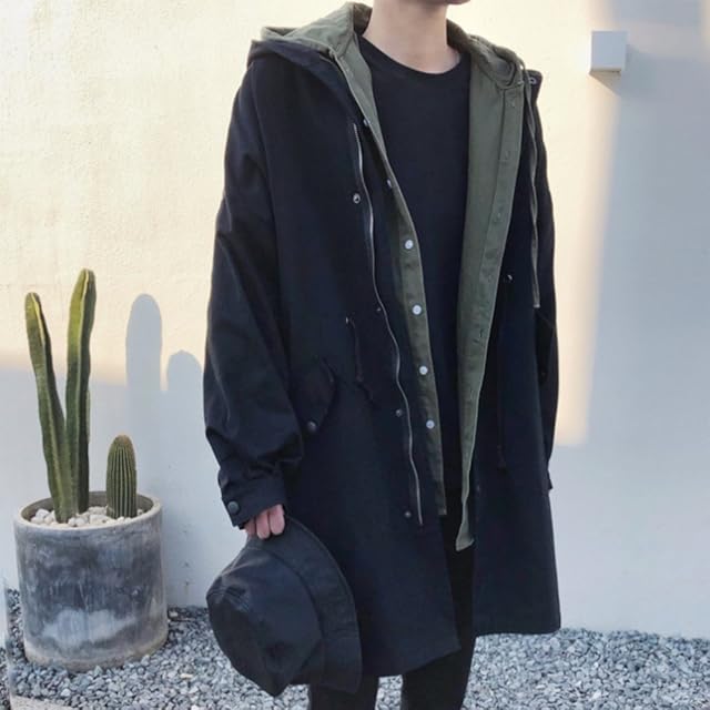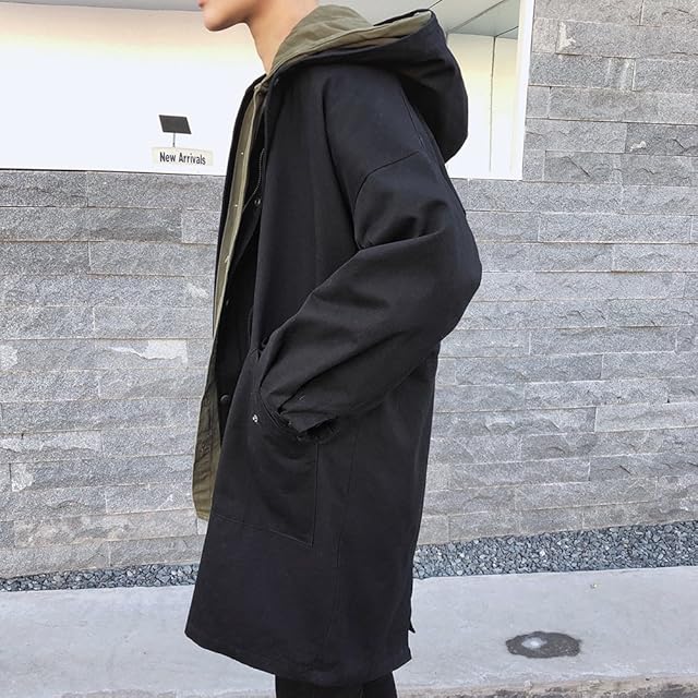 (ケイミ)KEIMI メンズ シングルコ ト アウタ 春 ジャケット スプリングコ ト メンズ ゆったりロング 大きいサイズ トレンチコ ト ビジネス カジュアル フ ド付き アウタ ミリタリ (黒 S)