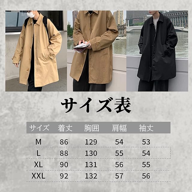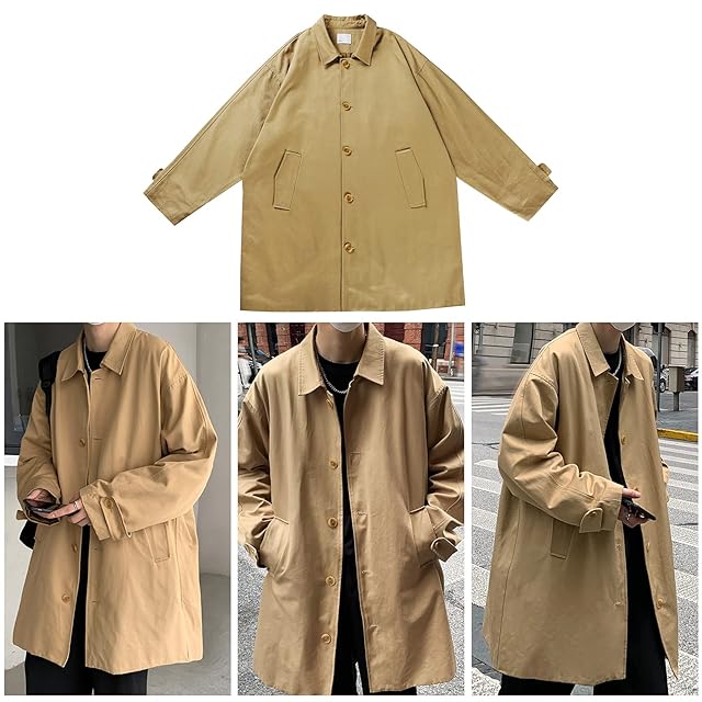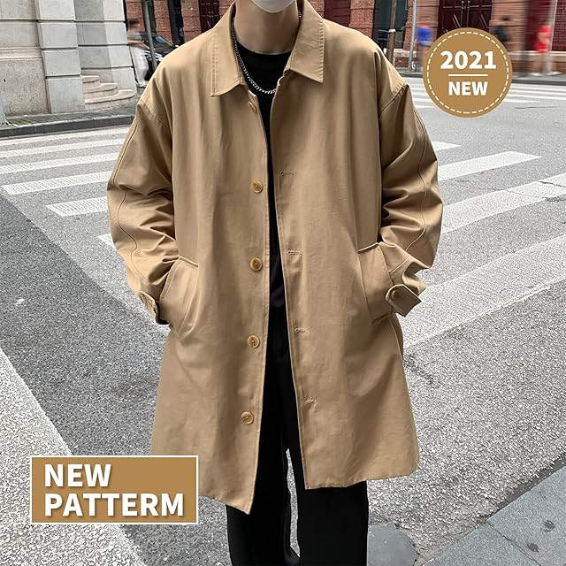 [YAYOKYA] トレンチコート メンズ ジャケット ビジネス 無地 テーラード スプリングコート カジュアル ロング丈 秋冬 防寒 薄手 コート (カーキ, 2XL)