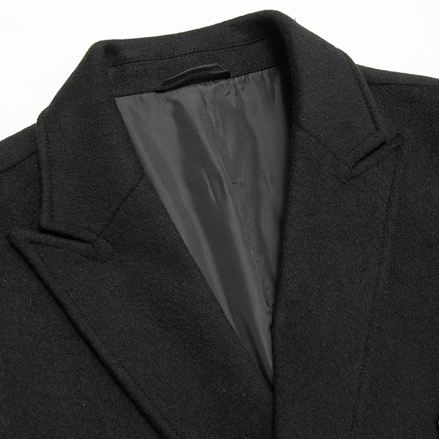 【上質な素材】ポリエステル70% +ウール30% 紳士の品位を感じさせるチェスターコートは、ウール混紡生地を使用し、肌触りが柔らかく着心地が良く、暖かく着心地、防風・防寒性に優れています。カジュアルからフォーマルまで大活躍する人気コートです