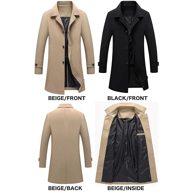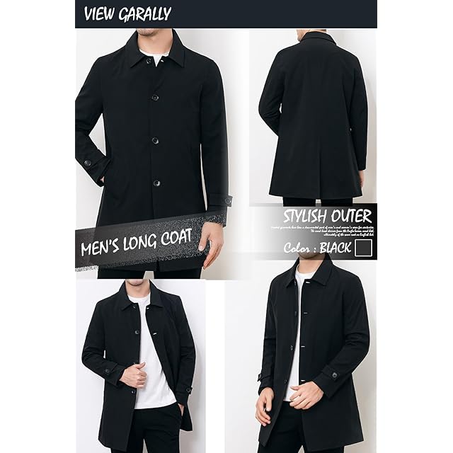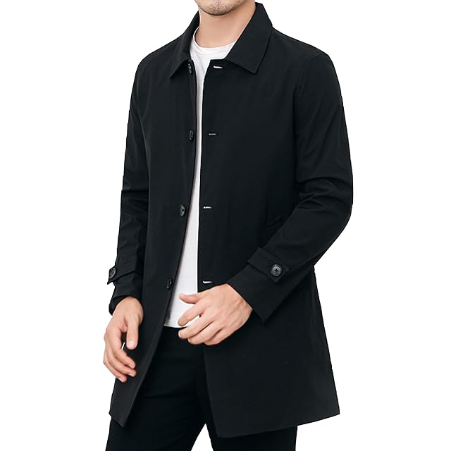 メンズ トレンチコート ビジネス カジュアル アウター フォーマル ミディアム丈 ミドル 美シルエット スリムフォルム コート レインコート ロングジャケット MA04 (31.Black_L)