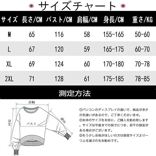 【SIZE:XL】身長の目安:170-180cm体重:70-78kg 【SIZE:2XL】身長の目安:175-185cm体重:78-85kg 。※寸法は平置きにて計測しておりますので、多少の誤差がある場合がございます。