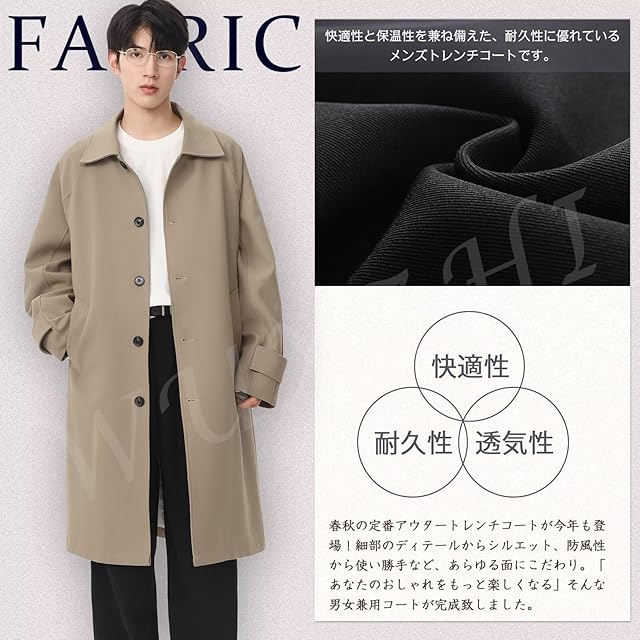 [WUXZHI] トレンチコート メンズ コート レディース ロングコート 折り襟 ゆったり ビジネス カジュアル 春コート 秋服 オーバーサイズ 大きいサイズ 春 秋 冬 ユニセックス ファッション