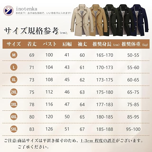 [inotenka] トレンチコート メンズ 大きいサイズ ビジネスコート ジャケット アウター 紳士服 ウインドブレーカー カジュアル アウトドア 登山 通勤 防風 春 秋 中長丈 ロングコート(M グリーン)