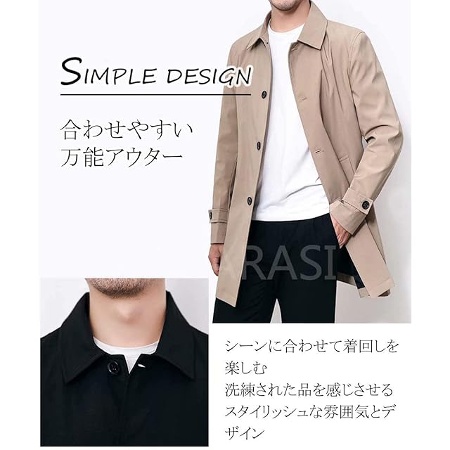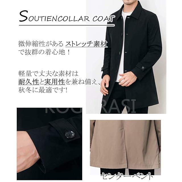 [KOGARASI] トレンチコート メンズ ジャケット スプリングコート テーラード ジャケット 防風 無地 ビジネス カジュアル 兼用 折り襟 秋 冬 春 おしゃれ 薄手