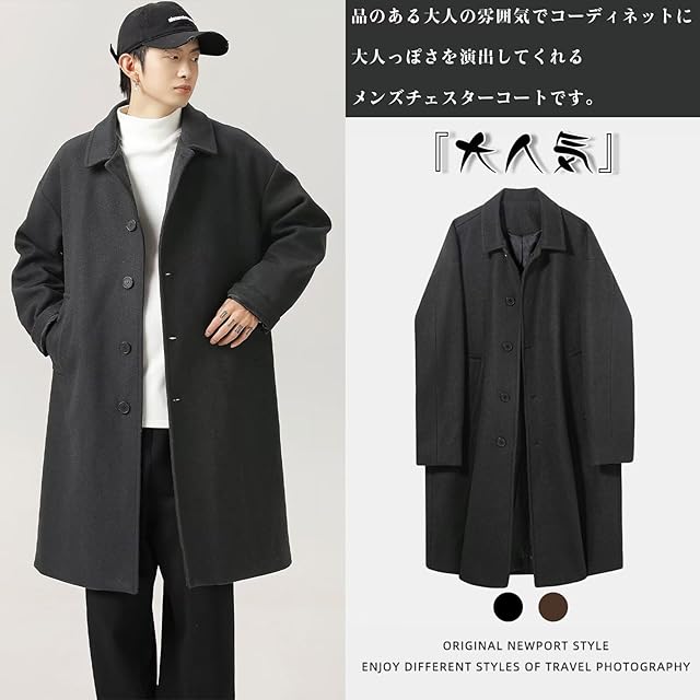 【おしゃれコート】秋冬の定番なファッション着として欠かせないメンズチェスターコートが登場致します!品のある大人の雰囲気でコーディネットに大人っぽさを演出してくれるメンズチェスターコートです。膝上までのロング丈なので、春秋冬の寒い日でも暖かく過ごせるマストアイテムです。