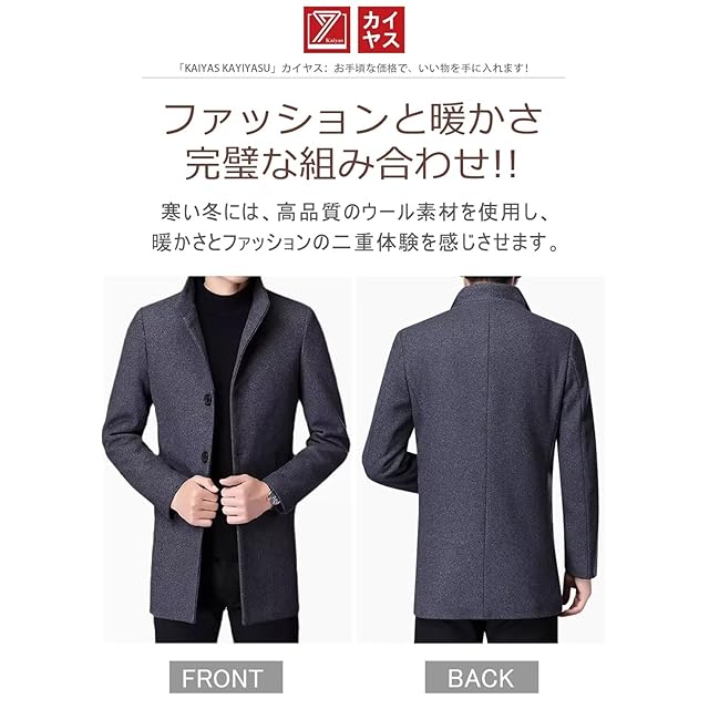 [Kayiyasu] チェスターコート メンズ コート ジャケット ロングコート トレンチコート アウター ビジネスコート ウールコート 冬服 防寒 無地 厚手 通勤 大きいサイズ ビジネス カジュアル おしゃれ 秋冬(XL ブラック)