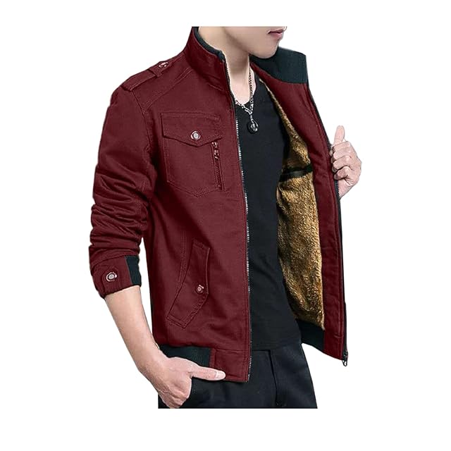 [Y's factory] 裏起毛 ミリタリージャケット M65 メンズ トレンチコート ジャンパー ボア アウター 綿 冬 秋 春 薄手 厚手 大きいサイズ 防風 [ ワイン/厚手 L(日本Sサイズ相当) ]