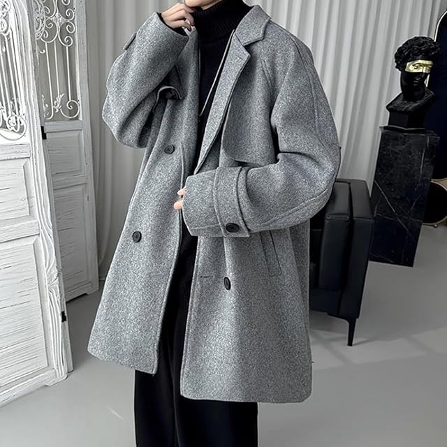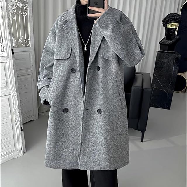 [MMTYRM] コート メンズ チェスターコート 秋冬 大きいサイズ スプリングコート ロング丈 トレンチコート メルトン 厚手 テーラード ダッフルコート 秋冬 グレー-XL