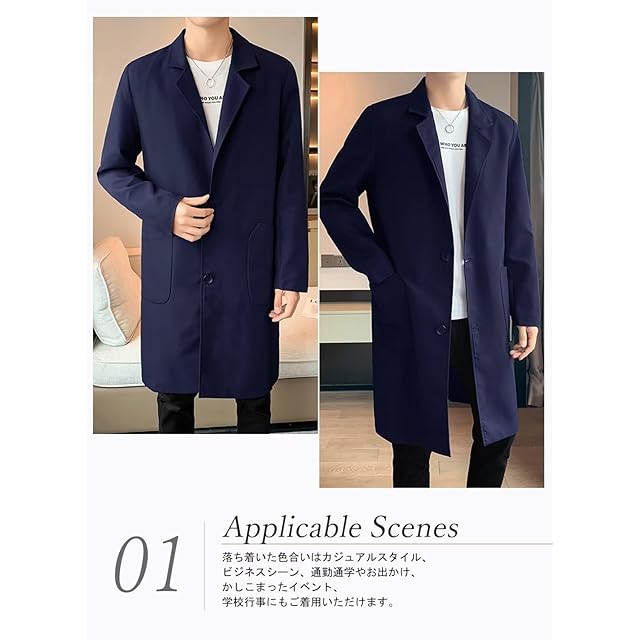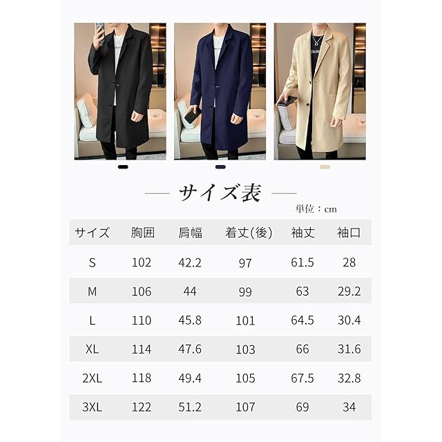 [KOGARASI] コート メンズ ロングジャケット トレンチコート 春秋服 冬用 アウター スリム 薄手 厚手 テーラードカラー ビジネス カジュアル 紳士服 大きいサイズ 男女兼用