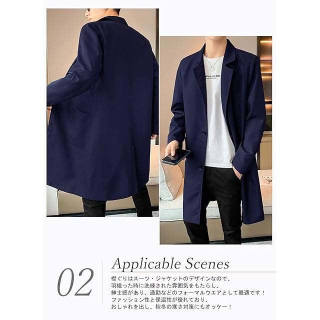 ★襟ぐりはスーツジャケットのデザインなので、落ち着いた色合いに見えて、羽織った時に洗練された雰囲気をもたらし、紳士感があり、通勤などのフォーマルウエアとして最適です!ファッション性と保温性が優れており、おしゃれさを出し、 秋冬の寒さ対策にもオッケイです!