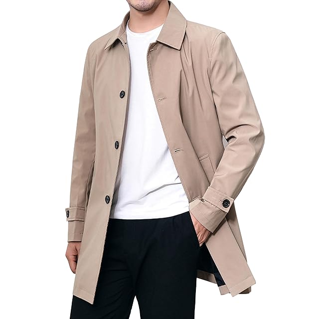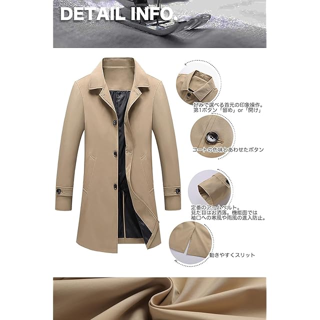メンズ トレンチコート ビジネス カジュアル アウター フォーマル ミディアム丈 ミドル 美シルエット スリムフォルム コート レインコート ロングジャケット MA04 (41.Beige_L)
