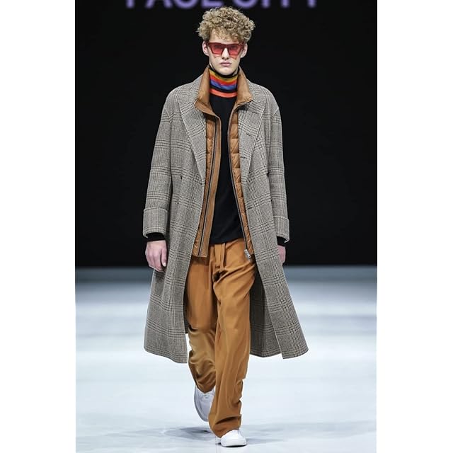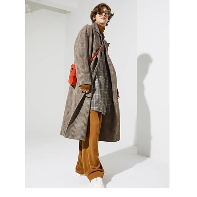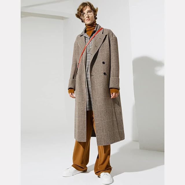 スリムフィットはメンズの優雅さを示し、膝下丈ロングコートはクールです