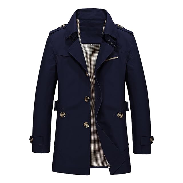 [inotenka] トレンチコート メンズ 大きいサイズ ビジネスコート ジャケット アウター 紳士服 ウインドブレーカー カジュアル アウトドア 登山 通勤 防風 春 秋 中長丈 ロングコート(XL ネイビー)