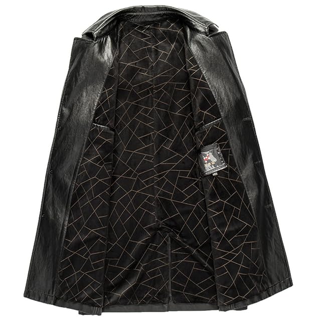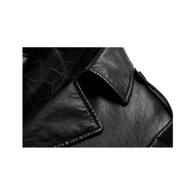 [NBLL] レザージャケット メンズ ラム革コート ロングジャケット レザーコート 革ジャケット ライダースジャケット 防寒コート バイクジャケット トレンチ ビジネスコート 高級ラム羊革 防風 保温 紳士服 (L/175, ブラック)