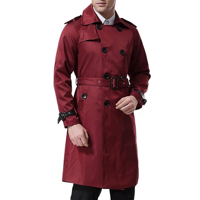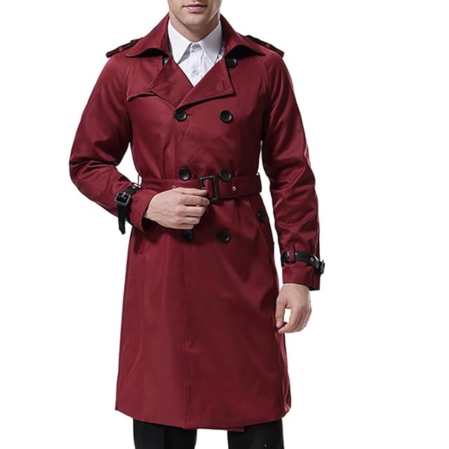 [AOWOFS] トレンチコート メンズ ダブルボタン ロングコート ベルト付き スリム ビジネス アウター 春秋 冬
