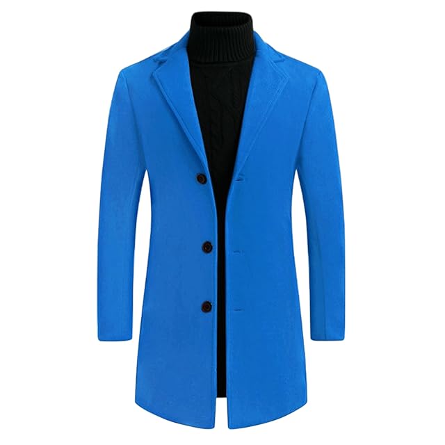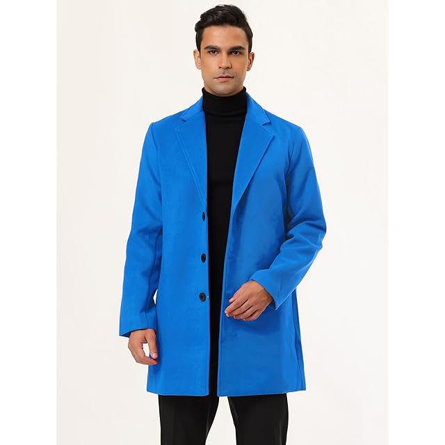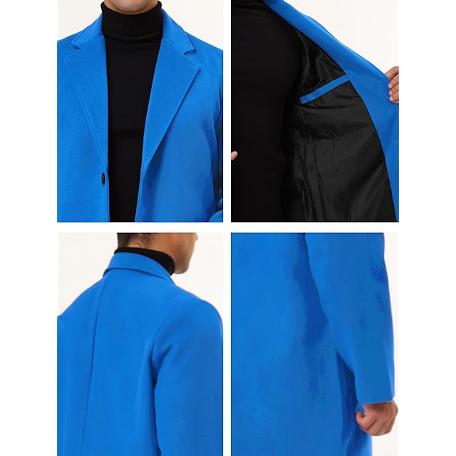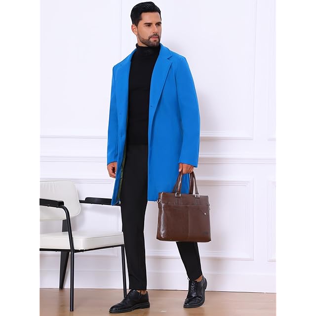 [Lars Amadeus] トレンチコート ロングジャケット オーバーコート スリム ノッチドラペル シングルブレスト 冬 メンズ ブルー XL