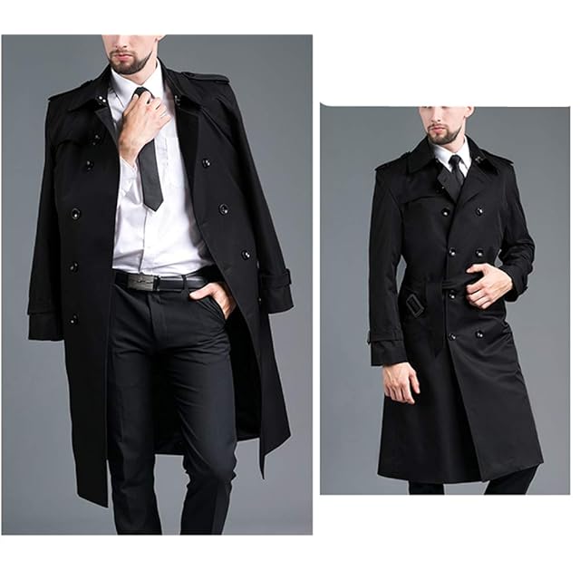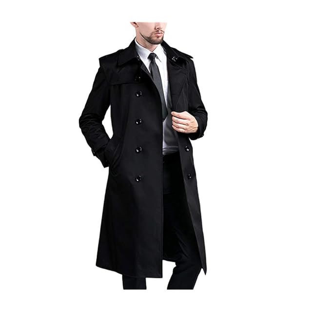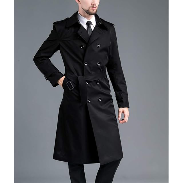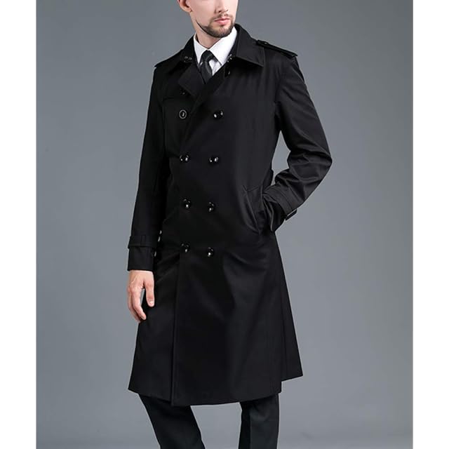 [JINLUN] トレンチコート メンズ 冬 スーツ カジュアル ロング 仕事 コート 秋 おしゃれ スリム ビジネス 冬服 秋服 オフィス 防寒 通学 通勤 旅行 (ブラック, 3XL)