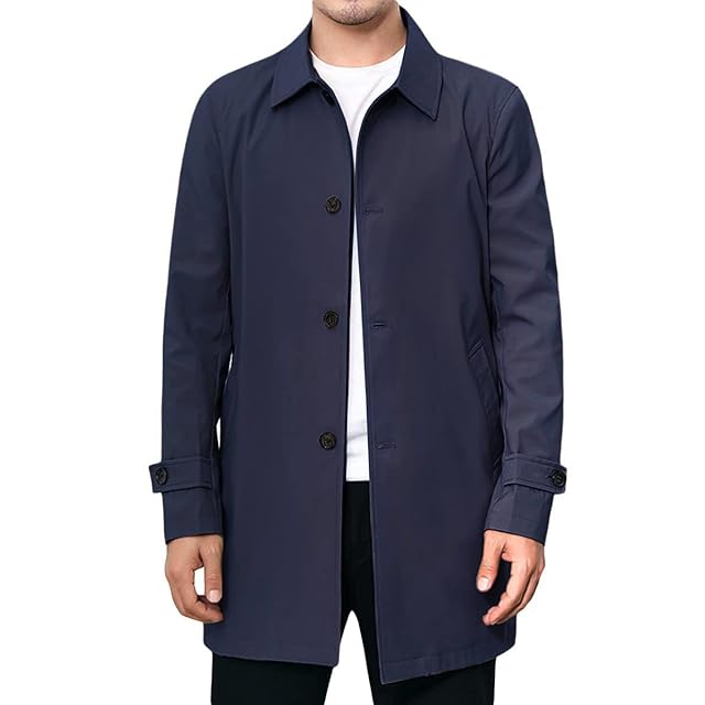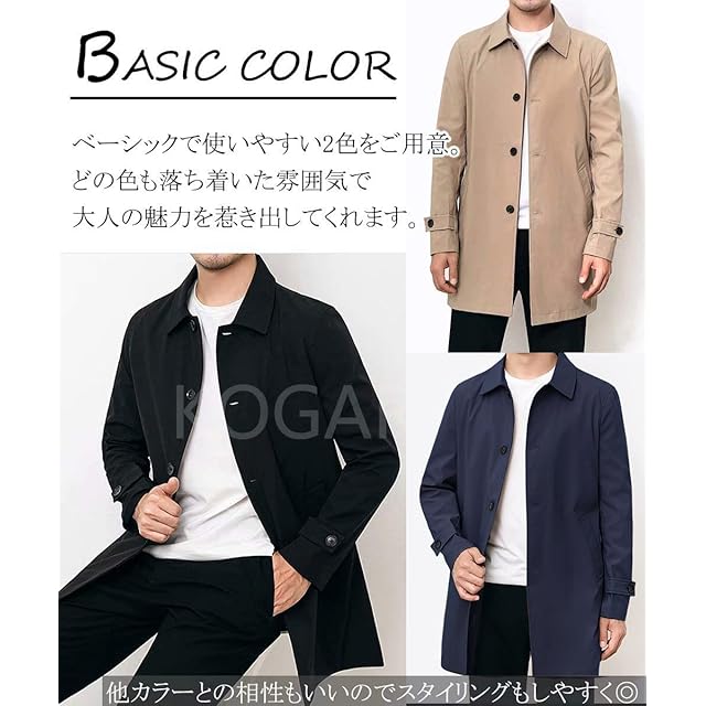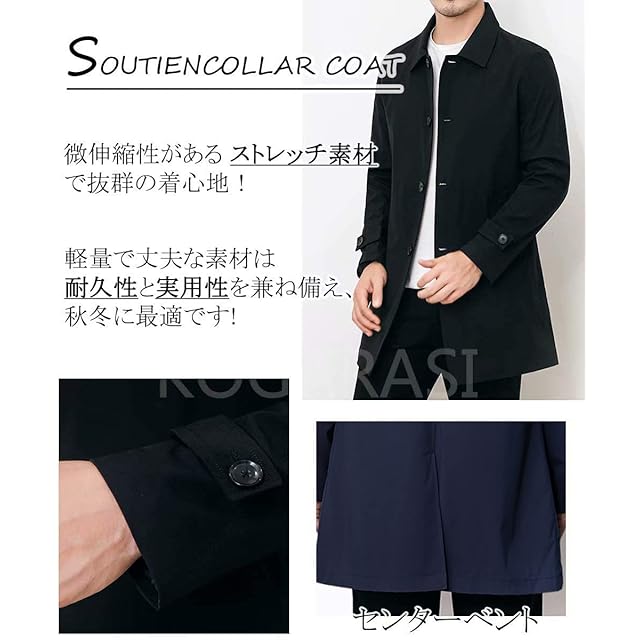[KOGARASI] トレンチコート メンズ ジャケット スプリングコート テーラード ジャケット 防風 無地 ビジネス カジュアル 兼用 折り襟 秋 冬 春 おしゃれ 薄手 (ネイビー, XS)
