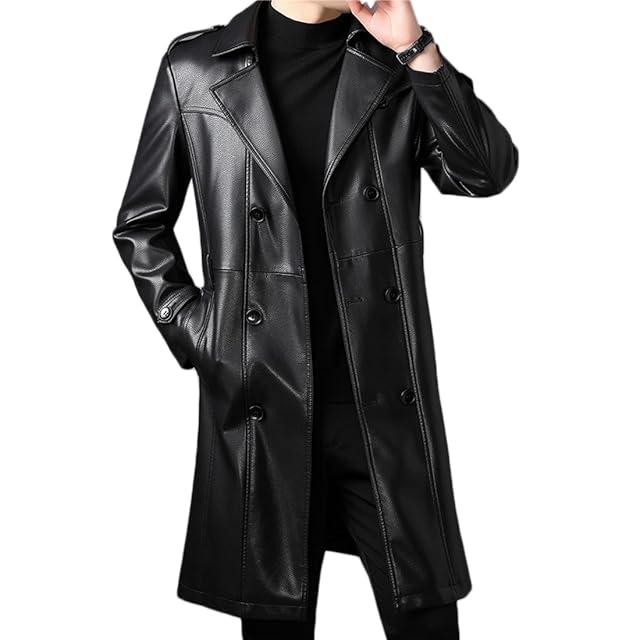 [NBLL] シープスキン ラム革コート レザージャケット メンズ レザーコート コート ラム皮革 トレンチ ビジネスコート ロングジャケット バイクジャケット 高級ラム羊革 防風 保温 紳士服 通勤 通学 (M, ブラック)