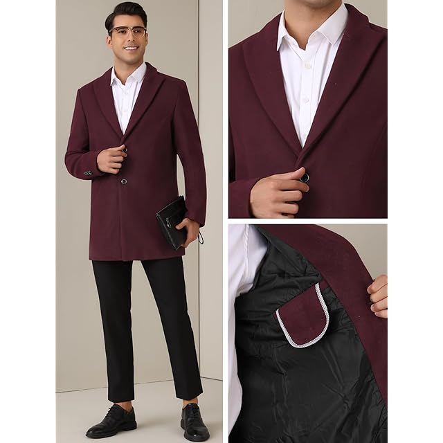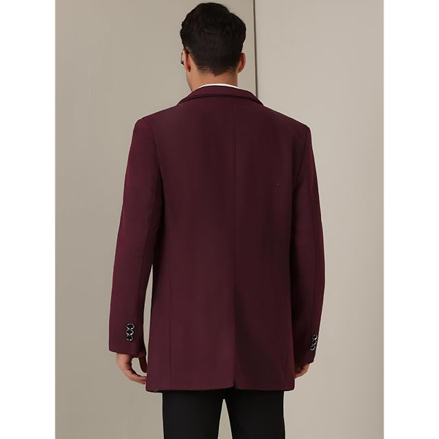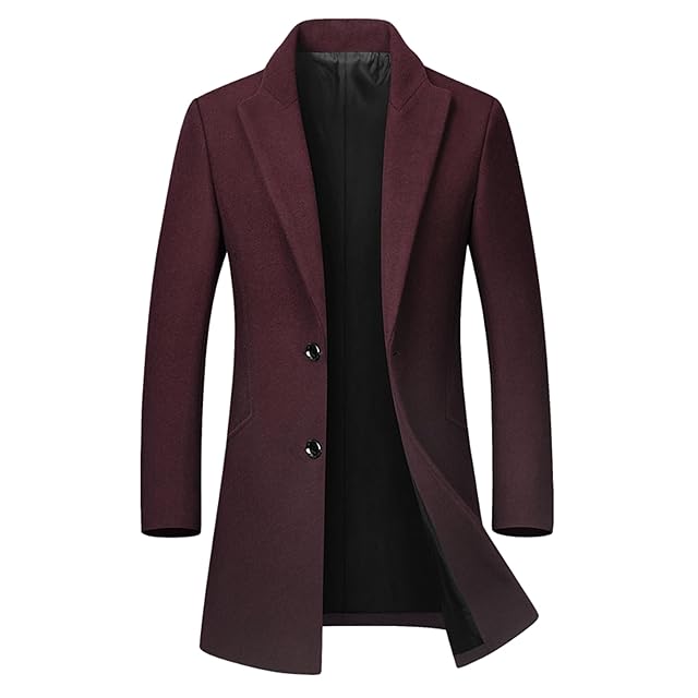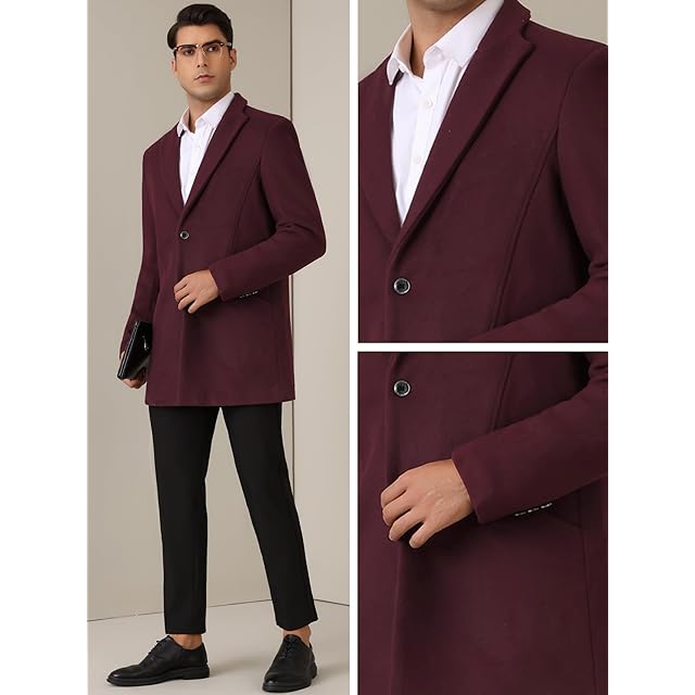 [Lars Amadeus] 冬用トレンチコート メンズ シングルブレスト スリムフィット ビジネス ロングオーバーコート ブルゴーニュ S